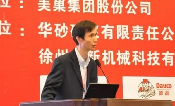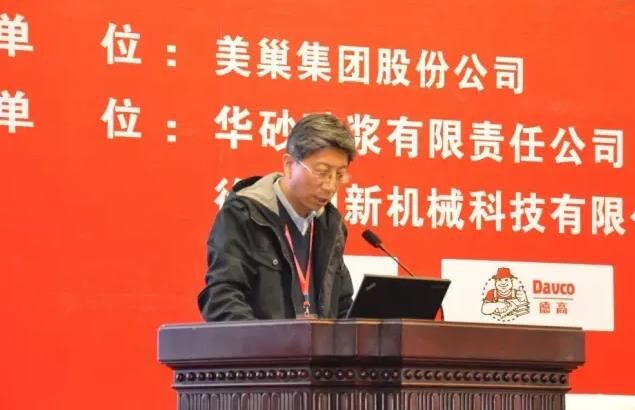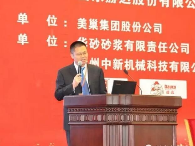 華砂砂漿有限責(zé)任公司王曉峰做“砂漿系統(tǒng)化服務(wù)在工程領(lǐng)域的運行優(yōu)勢”;