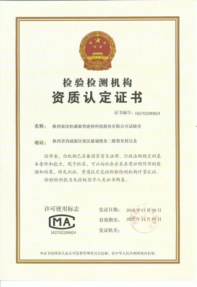 五、陜西秦漢恒盛新型建材科技股份有限公司試驗室順利通過資質(zhì)認(rèn)定