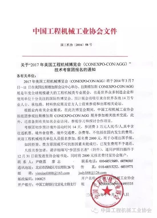關(guān)于2017年美國工程機械博覽會技術(shù)考察團(tuán)報名的通知