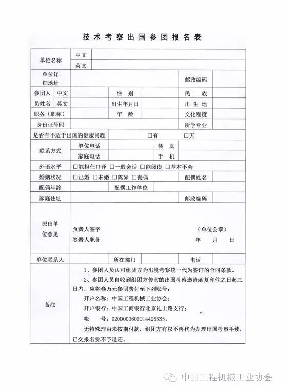 考察團(tuán)初步預(yù)計境外活動時間14天,參團(tuán)費3萬元人民幣/,其中含往返機票、境外食宿費、境外交通費、雜費等,不包括在國內(nèi)發(fā)生的費用。歡迎工程機械相關(guān)單位人員報名參加,報名費2000元,用于辦理出國手續(xù)。