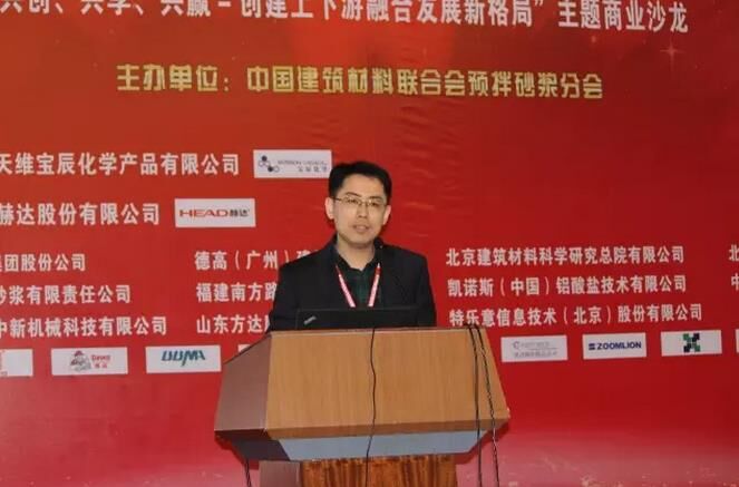 預(yù)拌砂漿分會理事單位,北京建筑材料科學(xué)研究總院有限公司新產(chǎn)業(yè)發(fā)展部經(jīng)理張吉秀博士則講述了“高性能石膏基自流平砂漿開發(fā)與應(yīng)用”;預(yù)拌砂漿分會副理事長單位、德高(廣州)建材有限公司技術(shù)經(jīng)理王鴻博則講述了“德高無塵在行動之彩色瓷磚填縫料”;預(yù)拌砂漿分會副理事長單位、華砂砂漿有限責(zé)任公司市場總監(jiān)王曉峰則以“砂漿系統(tǒng)化服務(wù)在工程領(lǐng)域的運行優(yōu)勢”為題進行了分享;預(yù)拌砂漿分會常務(wù)理事單位、特樂意信息技術(shù)(北京)股份有限公司平臺事業(yè)部總經(jīng)理郭琳妹更是將近將兩年最熱點的“互聯(lián)網(wǎng)+”與砂漿結(jié)合進行了分享。