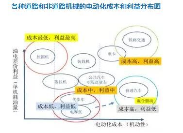 從圖上我們也發(fā)現(xiàn)一個(gè)過去沒有重視的地方,就是挖掘機(jī)。它其實(shí)應(yīng)該是電動(dòng)經(jīng)濟(jì)效益最大,而成本最低的機(jī)械!
