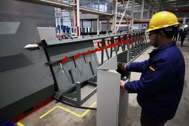 在基地生產(chǎn)現(xiàn)場看到,先進的PC生產(chǎn)流水線、全自動智能鋼筋加工線、智能混凝土攪拌站在緊張有序地工作著,焊接機器人、彎箍機器人、鋼筋柔性調(diào)直機器人等全自動智能鋼筋加工設(shè)備舞動著靈巧的長袖……目前,100余件電纜溝蓋板已經(jīng)生產(chǎn)并用于公司的基建中,不同數(shù)量的疊合板、陽臺板、樓梯、反打瓷磚墻板、剪力墻板、凸窗外墻板、堆場蓋板等預(yù)制構(gòu)件產(chǎn)品也于2016年年底達產(chǎn),2017年實現(xiàn)批量生產(chǎn)。