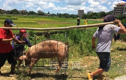 事故發(fā)生后,豬場(chǎng)老板叫來(lái)了另一輛貨車(chē)轉(zhuǎn)運(yùn)生豬。要將一頭一兩百斤重的生豬重新裝運(yùn)上車(chē)并不容易,這些受到了驚嚇的生豬顯得很不配合,需要兩三個(gè)人連拉帶拽才能把生豬趕進(jìn)籠子里裝運(yùn)上車(chē)。眾人用了兩個(gè)多小時(shí)才將生豬全部運(yùn)走。