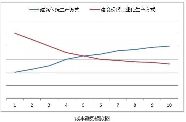 傳統(tǒng)生產(chǎn)方式的成本上升與工業(yè)現(xiàn)代化生產(chǎn)方式的成本下降,這是不可扭轉(zhuǎn)的發(fā)展趨勢!兩者終將在某個時間點相遇,當工業(yè)現(xiàn)代化生產(chǎn)方式下的成本低于傳統(tǒng)生產(chǎn)方式時,也是建筑工業(yè)現(xiàn)代化生產(chǎn)方式大面積取代建筑傳統(tǒng)生產(chǎn)方式的時間點。