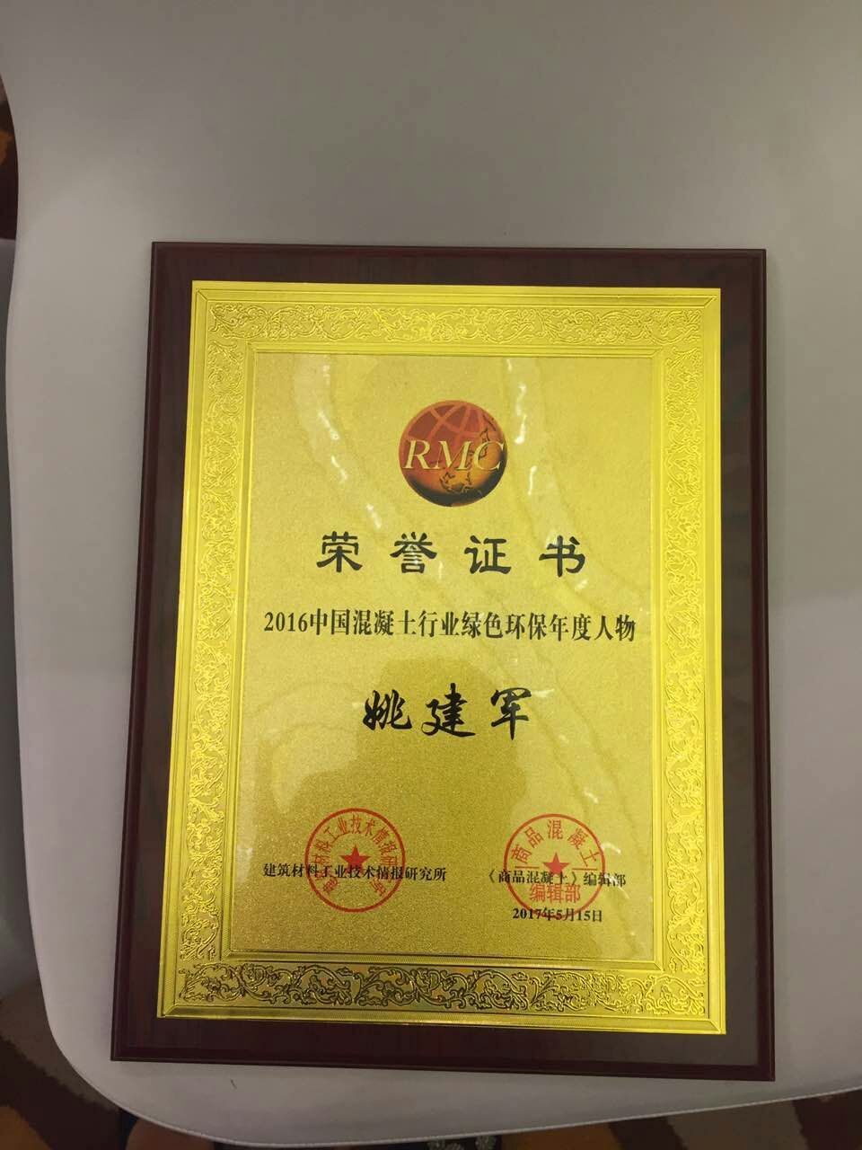 會議上,同時也公布了2016中國混凝土行業(yè)綠色環(huán)保年度人物,并由會議領導當場頒發(fā)了獲獎證書。