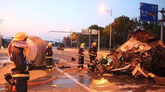 到達(dá)現(xiàn)場(chǎng)后,消防官兵經(jīng)過(guò)現(xiàn)場(chǎng)偵查發(fā)現(xiàn)水泥攪拌車(chē)與路中央護(hù)欄猛烈碰撞。事故中,攪拌車(chē)車(chē)頭損毀嚴(yán)重,車(chē)頭零部件散落一地,攪拌車(chē)司機(jī)被變形的車(chē)頭緊緊卡住,無(wú)法動(dòng)彈,情況萬(wàn)分危急。了解情況后,消防官兵決定利用液壓擴(kuò)張器和撐頂桿對(duì)駕駛室變形部位進(jìn)行破拆,對(duì)被困人員實(shí)施營(yíng)救,并做好現(xiàn)場(chǎng)警戒,防止發(fā)生二次事故。
