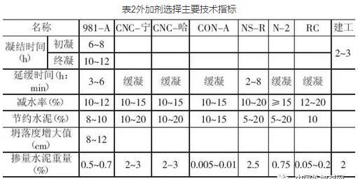 表2外加劑選擇主要技術(shù)指標(biāo)