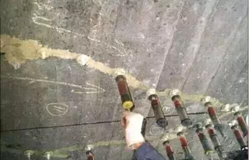 ① 由于混凝土攪拌運(yùn)輸時(shí)間過(guò)長(zhǎng),澆筑速度過(guò)快,振搗不實(shí)、施工縫做法不當(dāng)、模板走動(dòng)等原因形成裂縫,可以采用一般混凝土裂縫補(bǔ)強(qiáng)措施或者充填混凝土材料、鋼錨栓加固、甚至粘鋼板加固、預(yù)應(yīng)力加固等辦法補(bǔ)救。