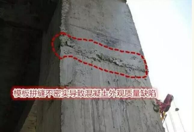 (3)混凝土配合比不當(dāng),產(chǎn)生離析,模板部位缺漿或模板漏漿。