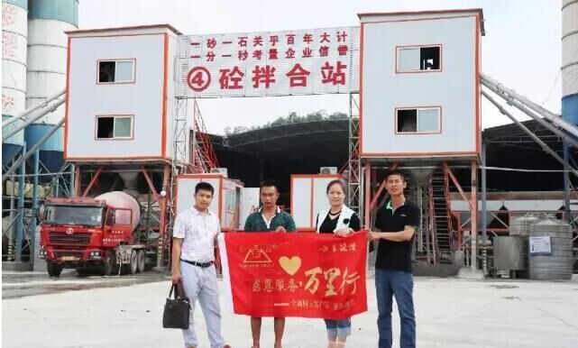 回訪團(tuán)到達(dá)2HZS60水泥混凝土攪拌站工地,查看了設(shè)備運(yùn)行情況,與攪拌站站長(zhǎng)深入交流,攪拌站站長(zhǎng)告知設(shè)備運(yùn)行良好,出料很給力,在整個(gè)工程工期中得到保證。