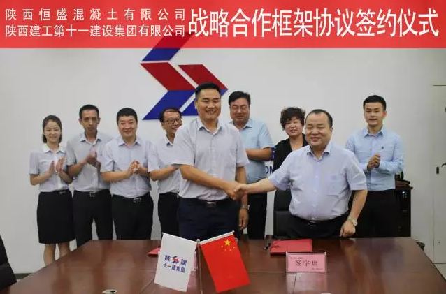 8月9日,陜西恒盛混凝土有限公司與陜西建工第十一建設(shè)集團(tuán)有限公司戰(zhàn)略合作框架協(xié)議簽約儀式在陜建十一建集團(tuán)西安總部隆重舉行。陜西恒盛集團(tuán)董事長王武鎖,陜西建工第十一建設(shè)集團(tuán)有限公司總經(jīng)理馮宏斌出席儀式代表雙方簽約。