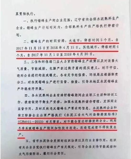 日前,遼寧省工信委和遼寧省環(huán)保廳聯(lián)合發(fā)文要求遼寧省水泥企業(yè)于今年11月開始啟動(dòng)水泥行業(yè)采暖季錯(cuò)峰停產(chǎn)計(jì)劃,除大連市以外的其他城市的全部水泥熟料生產(chǎn)企業(yè)錯(cuò)峰停產(chǎn)6個(gè)月,錯(cuò)峰生產(chǎn)自今年11月1日起停至明年春天4月末結(jié)束。