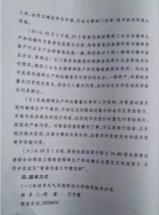 山西省長治市也發(fā)布《關(guān)于進(jìn)一步做好2017-2018秋冬季工業(yè)企業(yè)錯(cuò)峰生產(chǎn)和運(yùn)輸?shù)耐ㄖ?。要求?017年10月1日00時(shí)起至2018年3月31日24時(shí),水泥(含粉磨站)等建材行業(yè)企業(yè)全部停產(chǎn)。