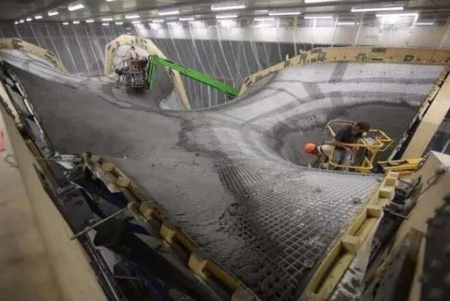 據(jù)了解,工程師們?cè)诖蛟爝^(guò)程中并沒(méi)有采用定制、一次性的木頭或泡沫支架,而是使用了他們自己設(shè)計(jì)的一種新技術(shù)。一張鋼索網(wǎng)被拉伸到想要的形狀,然后再在上面放置聚合織物形成一個(gè)靈活的模板。之后形狀可以通過(guò)算法控制,它能將力均勻地發(fā)布在各鋼索間并決定每個(gè)部分所需要的混凝土量。之后,鋼索網(wǎng)可以被拆掉、重復(fù)使用和重新調(diào)整。