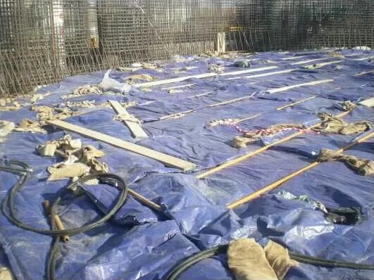 (3)保證混凝土運送到工地的出罐溫度在15℃以上,從而保證混凝土的入模溫度控制在6℃以上,并摻加抗凍性能達到-15℃的抗凍劑。在鋼筋混凝土中不宜摻用氯鹽類防凍劑。