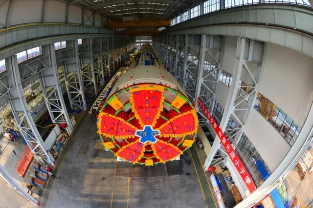 ▲鐵建重工自主研制的國產(chǎn)首臺常壓換刀式超大直徑泥水平衡盾構(gòu)機