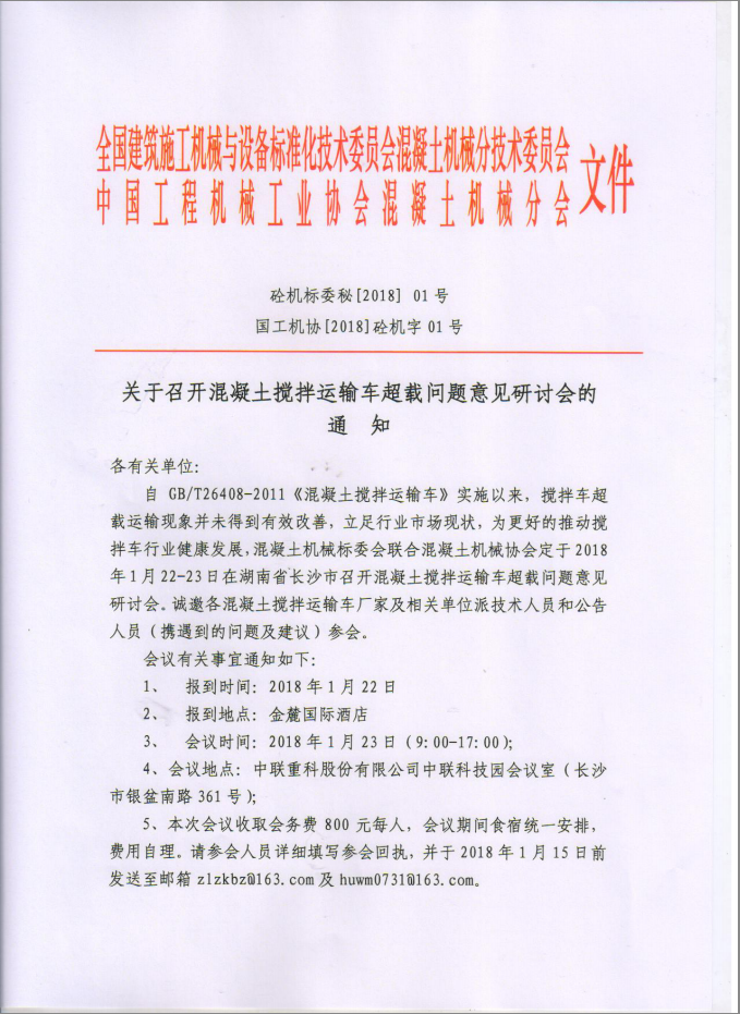 關(guān)于召開(kāi)混凝土攪拌運(yùn)輸車超載問(wèn)題意見(jiàn)研討會(huì)的通知