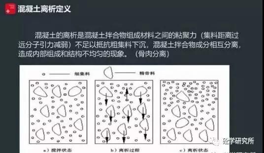 混凝土離析啊是混凝土是混凝土拌合物組成材料之間的一個黏聚力,(集料距離過遠分子引力減弱)不足以抵抗粗集料下沉,混凝土拌合物成分互相分離,造成內部組成結構不均勻的現(xiàn)象。