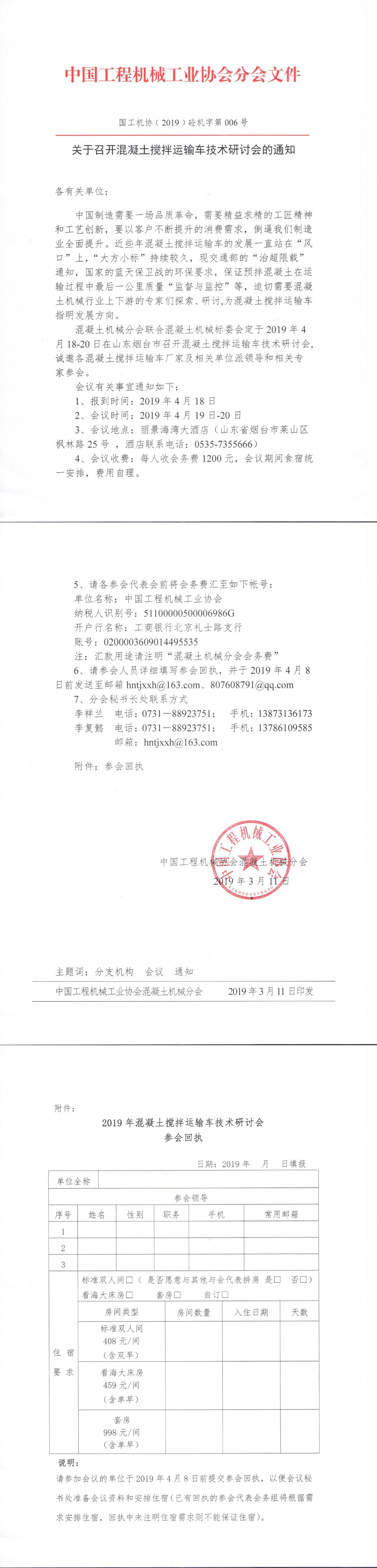 關于召開混凝土攪拌運輸車技術研討會的通知