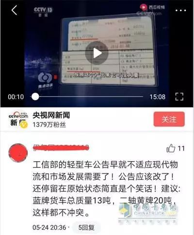 事件發(fā)酵幾日,從央視新聞的用戶留言趨向,到行業(yè)媒體的發(fā)聲,借此合理調(diào)整輕卡噸位限值的呼聲最高,讓“大噸小標(biāo)”合理轉(zhuǎn)正或許是皆大歡喜的結(jié)果。