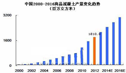 中國(guó)商品混凝土市場(chǎng)自2000年開(kāi)始,增長(zhǎng)就大幅度提升,2000-2012年平均增幅高達(dá)30%左右。但受全球經(jīng)濟(jì)危機(jī)的影響,中國(guó)2008年的商品混凝土市場(chǎng)也受到了不小的沖擊,商品混凝土的增長(zhǎng)率大幅度下滑。不過(guò)與歐盟、美國(guó)等其他發(fā)達(dá)國(guó)家混凝土負(fù)增長(zhǎng)率而言,中國(guó)混凝土市場(chǎng)表現(xiàn)的還是十分活躍的。這也反映出了中國(guó)的商品混凝土行業(yè)進(jìn)入高速發(fā)展時(shí)期的特征。但中國(guó)市場(chǎng)目前的市場(chǎng)狀況十分紊亂,行業(yè)內(nèi)需要進(jìn)行一番整合,清理一些市場(chǎng)上不規(guī)范的企業(yè),相信整合后對(duì)我國(guó)商品混凝土行業(yè)將起到較大的推動(dòng)作用。中國(guó)混凝土網(wǎng)預(yù)計(jì)“十二五”期間,預(yù)拌混凝土產(chǎn)量還將有小幅增長(zhǎng),到2016年中國(guó)預(yù)拌混凝土產(chǎn)量將突破30億立方米,混凝土行業(yè)將邁上一個(gè)新的臺(tái)階,但總體行業(yè)回歸平穩(wěn)狀態(tài)。