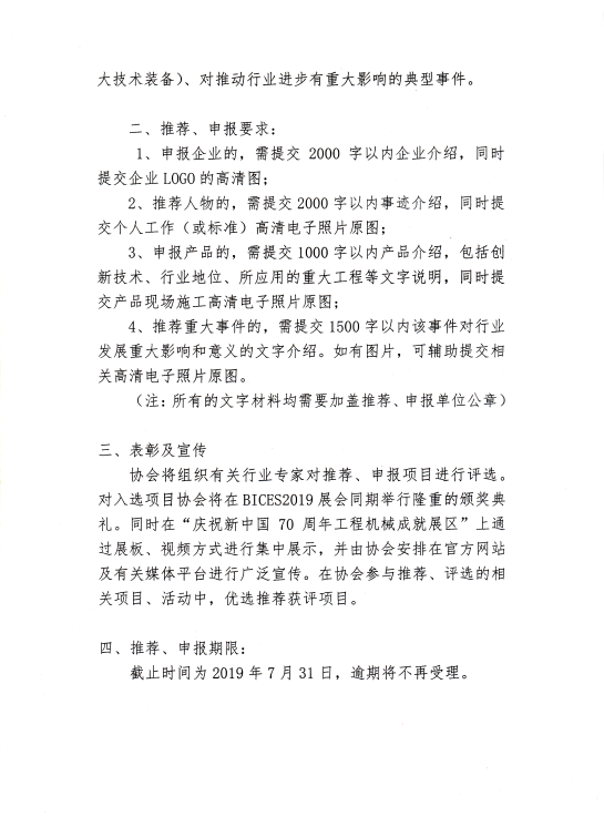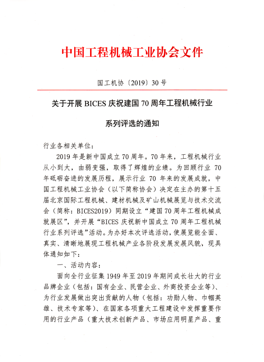 關(guān)于開展BICES慶祝建國70周年工程機械系列行業(yè)評選的通知