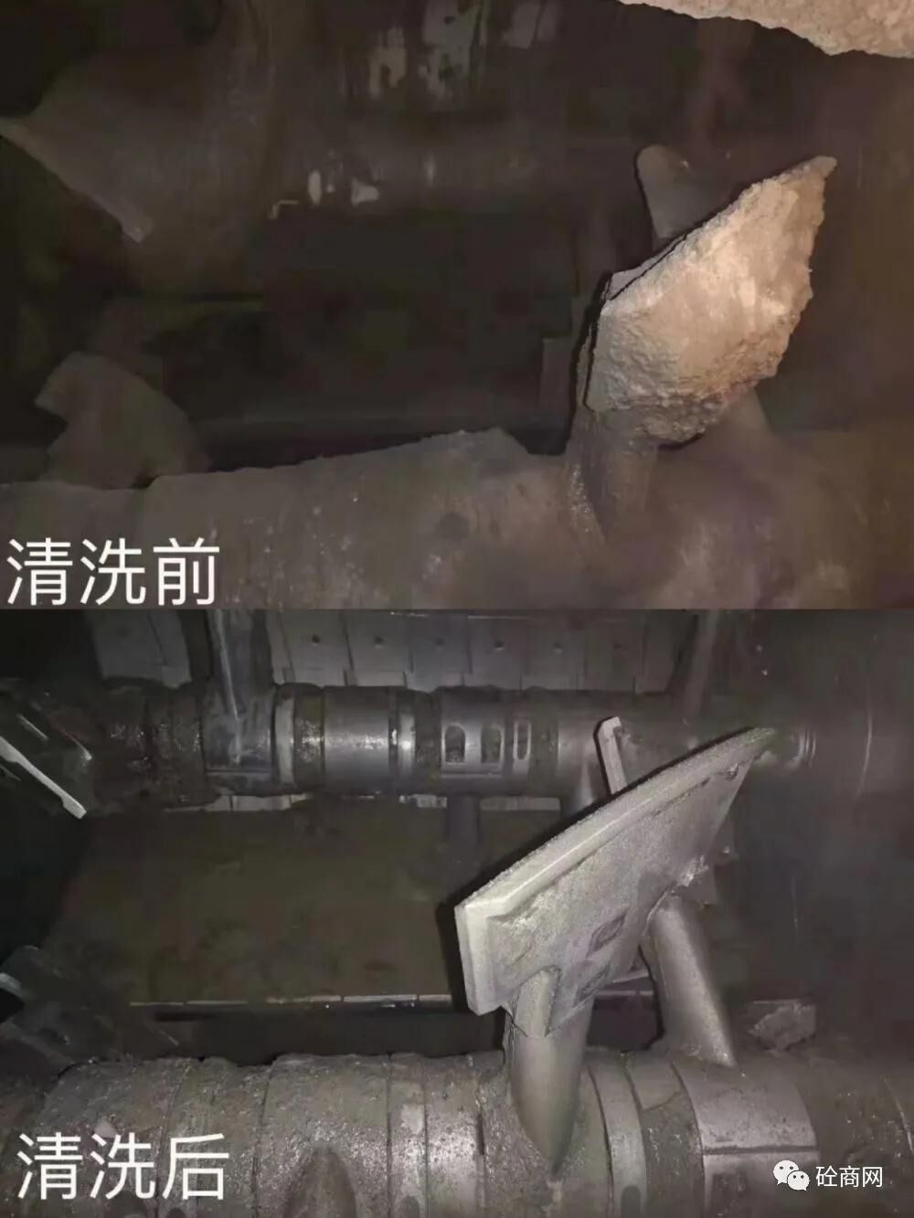 攪拌主機因為每天要反反復(fù)復(fù)不停的生產(chǎn),就會在大軸及葉片或周邊堆積大量的混凝土結(jié)塊,時間長了,就會出現(xiàn)抱軸現(xiàn)象,而抱軸現(xiàn)象一出現(xiàn),就由輔助工進主機進行清理,由于用風(fēng)鎬這類電動工具清理,在大軸或葉片上就會留下很多的坑坑洼洼,導(dǎo)致抱軸現(xiàn)象會越來越頻繁,越來越嚴(yán)重!