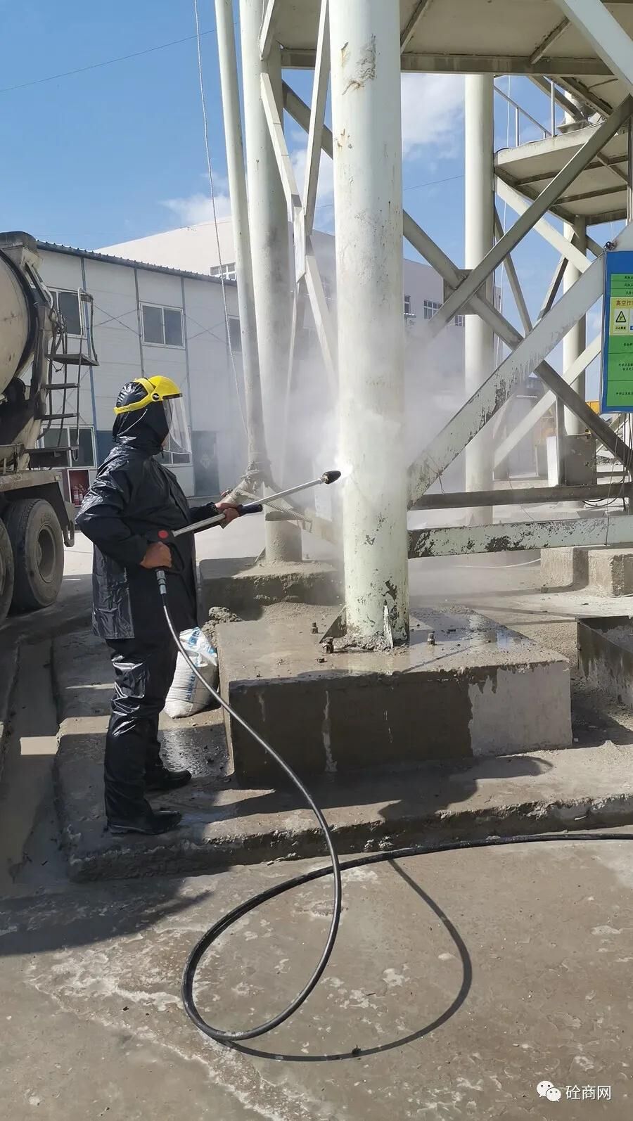 不管是從設(shè)備使用維護方面還是更重要的人員生命安全方面,使用新型的清理工具將會避免這些危險的發(fā)生。青島飛天公司研發(fā)的攪拌機專用清理設(shè)備——高壓水射流設(shè)備就很好的解決了攪拌站這一清洗難題!