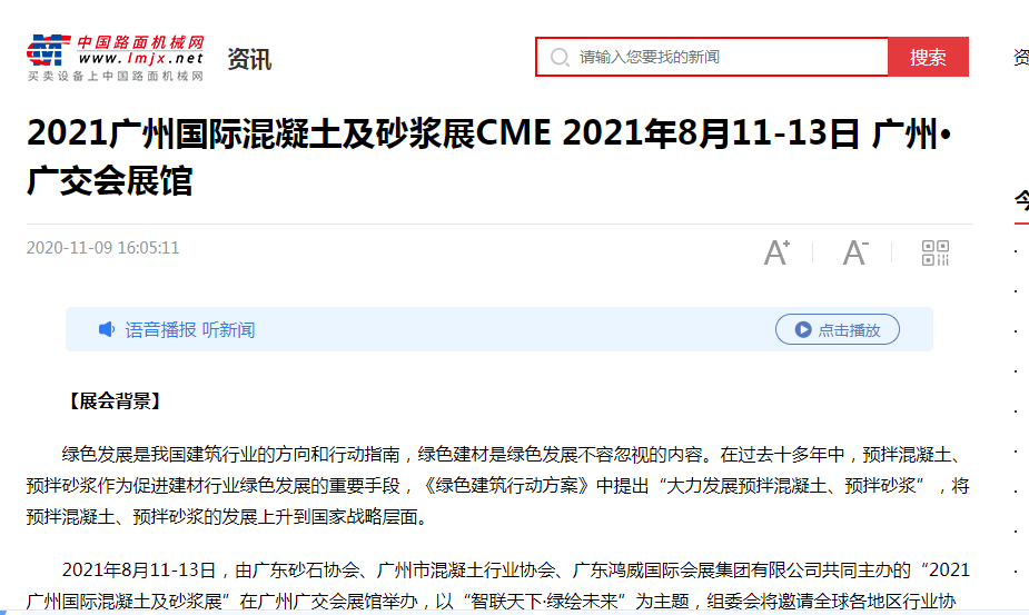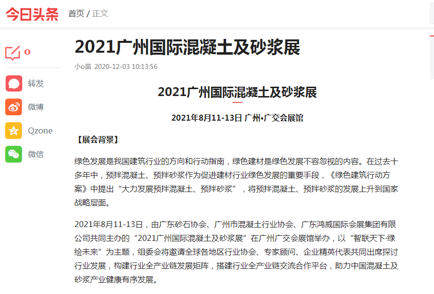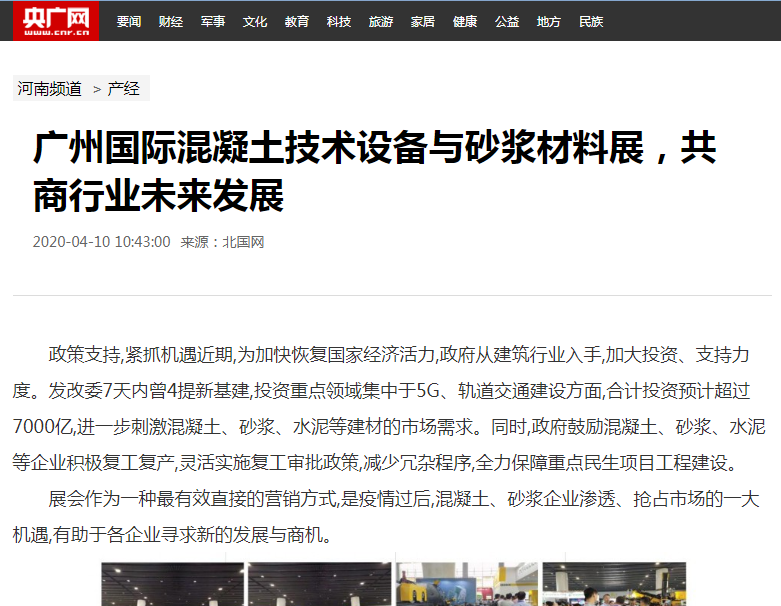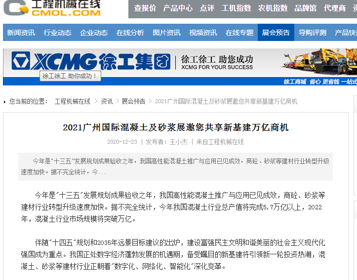在此,小編就不一一列舉了,再次衷心感謝各大媒體對2021廣州國際混凝土及砂漿展的大力宣傳,為各地的混凝土、砂漿產(chǎn)品、設(shè)備代理商、經(jīng)銷商、承包商、進出口貿(mào)易商等業(yè)內(nèi)人士等提供全面了解展會的平臺!