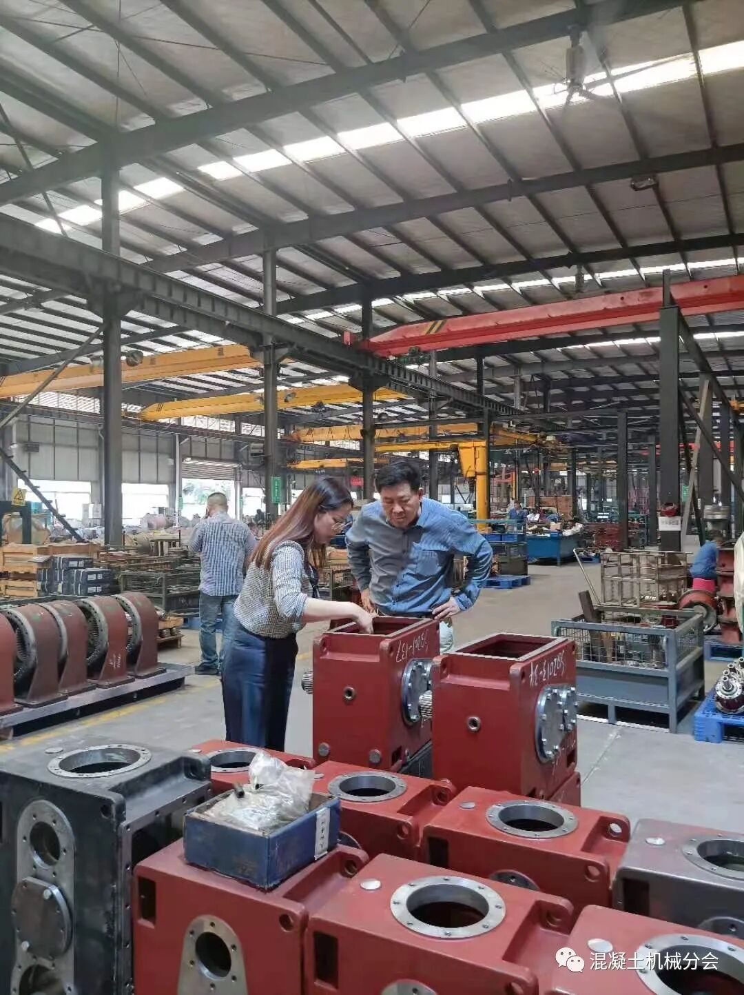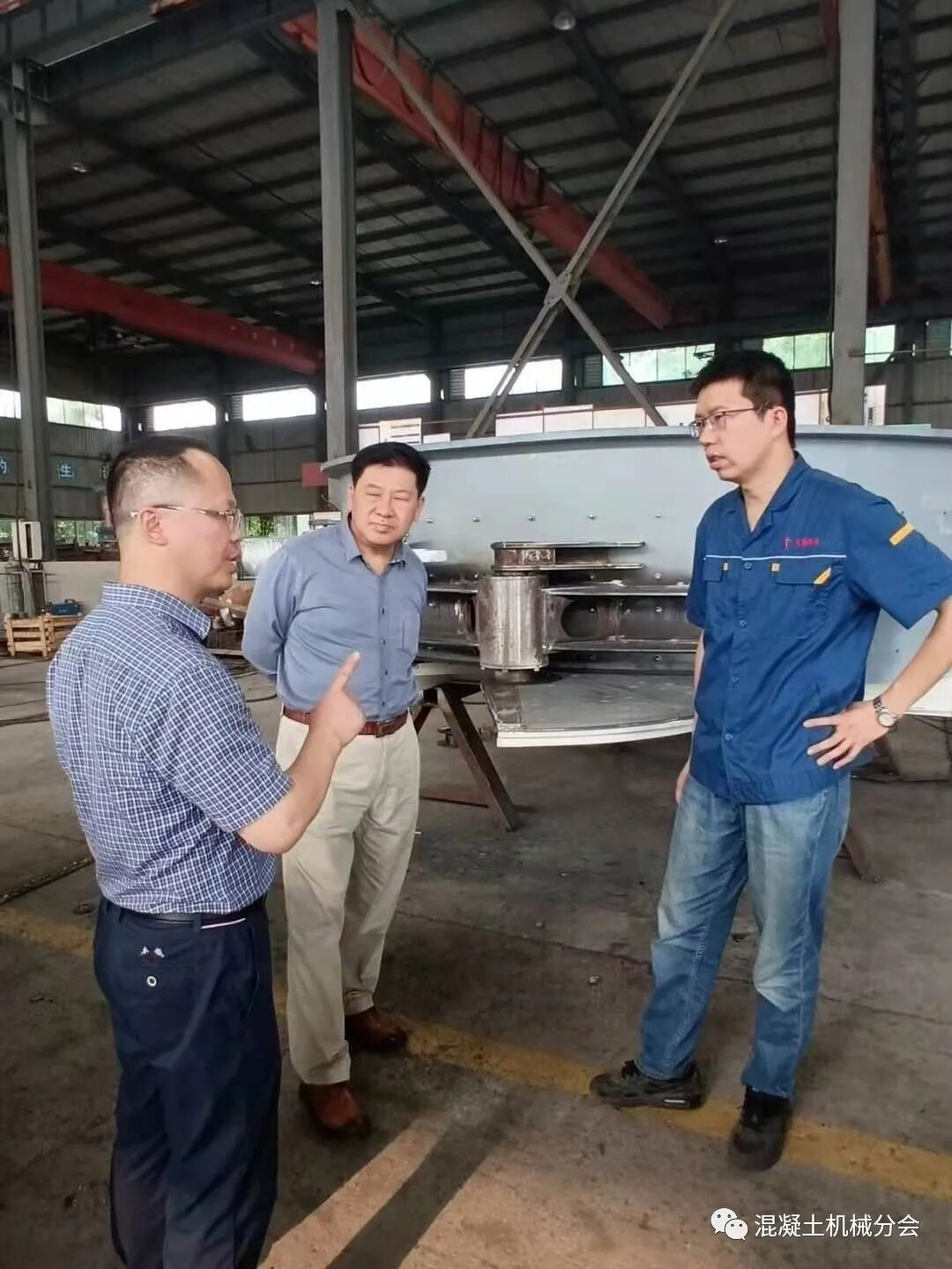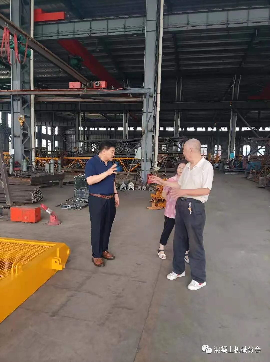 張工講到,周總外出學(xué)習(xí)趕不回來,特別交代自己和林總接待好符會(huì)長一行。在交流的過程中,張工也提到因?yàn)樾袠I(yè)現(xiàn)在經(jīng)營比較困難,公司基本停止了混凝土攪拌設(shè)備的生產(chǎn),只有部分塔式起重機(jī)還在經(jīng)營,也陪同會(huì)長在車間參觀了一圈,對(duì)實(shí)際的生產(chǎn)情況進(jìn)行了解。