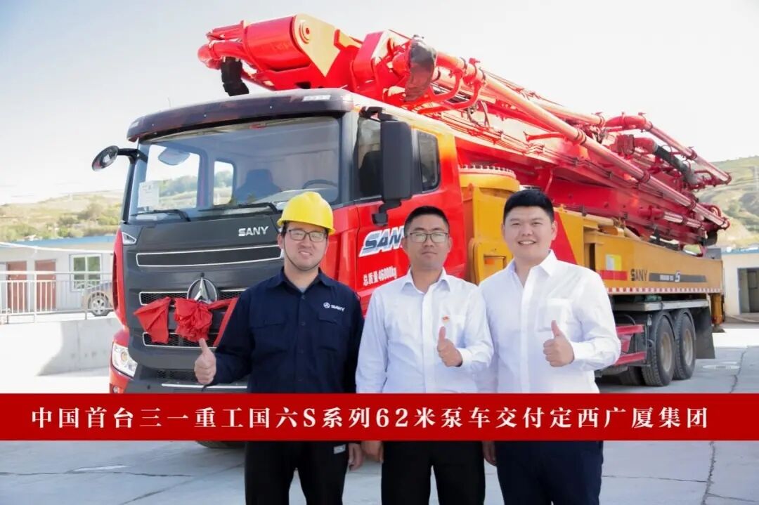 2021年8月,定西廣廈集團采購國內(nèi)首臺三一國六S系列62米泵車。
