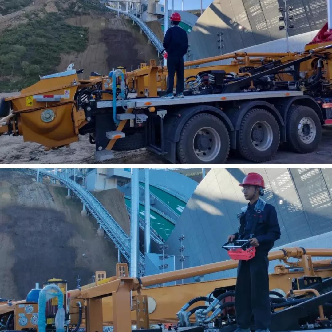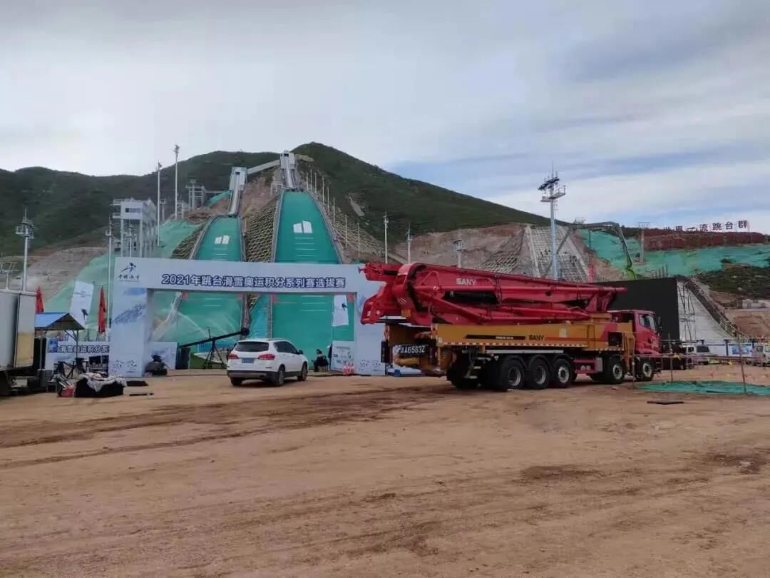▲三一泵車在淶源國(guó)家跳臺(tái)滑雪訓(xùn)練科研基地協(xié)助拍攝