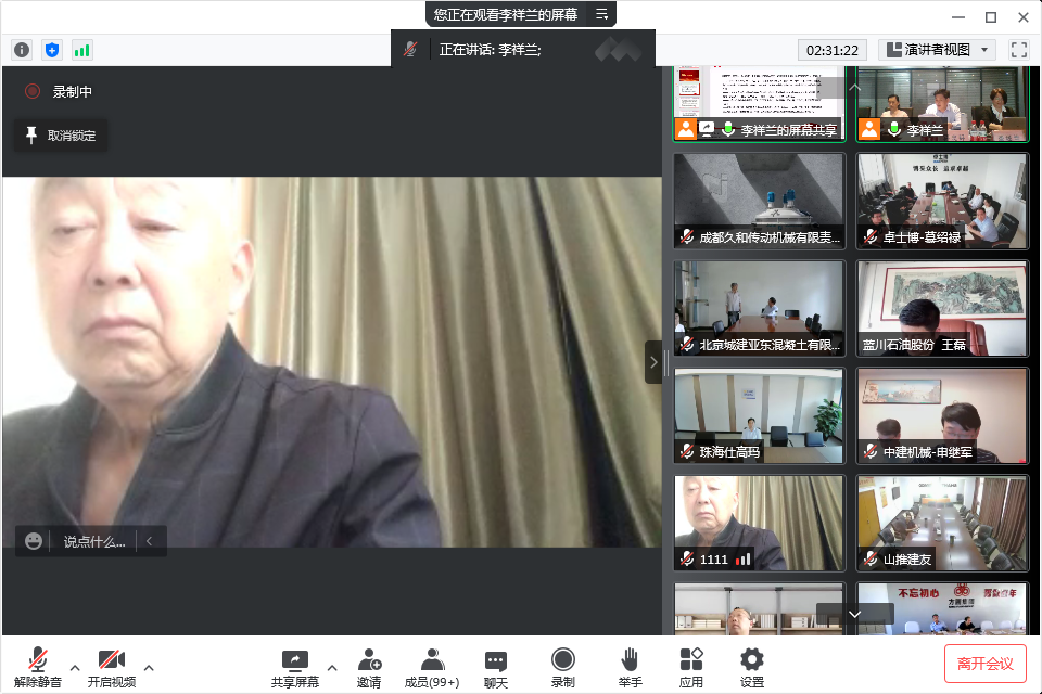 混凝土機(jī)械分會(huì)的年會(huì)還得到很多行業(yè)老前輩,專(zhuān)家、高工、行業(yè)精英的關(guān)注和支持,在自由交流環(huán)節(jié),中國(guó)工程機(jī)械工業(yè)協(xié)會(huì)名譽(yù)會(huì)長(zhǎng)祁俊祁會(huì)長(zhǎng)也發(fā)言祝賀,首先祝賀大會(huì)線上會(huì)議開(kāi)的非常成功,他呼吁現(xiàn)在中國(guó)混凝土機(jī)械在全世界已占主導(dǎo)地位,站在領(lǐng)跑位置,肯定了行業(yè)的領(lǐng)先性,但由于各種因素的疊加,行業(yè)也到了最困難的時(shí)候,協(xié)會(huì)要增加上下游的互動(dòng),爭(zhēng)取支持,抱團(tuán)取暖,希望混凝土機(jī)械在工程機(jī)械整個(gè)領(lǐng)域大家共同進(jìn)步,相互幫扶渡過(guò)難關(guān)。