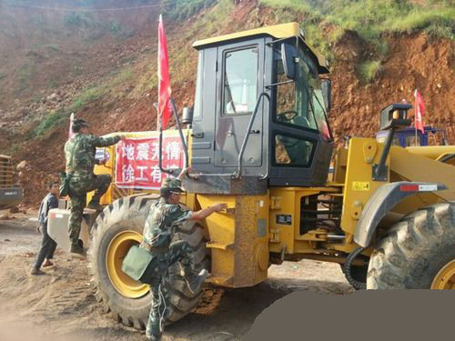 趕到災(zāi)區(qū)的徐工救援隊(duì)指揮徐楠聯(lián)系上當(dāng)?shù)卣筒筷?duì),在辦理好登記等相關(guān)手續(xù)后,積極請(qǐng)戰(zhàn)要求分派任務(wù),主動(dòng)要求到最困難和最需設(shè)備的地方。中國武警部隊(duì)第三總隊(duì)領(lǐng)導(dǎo)經(jīng)過現(xiàn)場開會(huì)部署,決定臨時(shí)征用徐工一臺(tái)裝載機(jī)加入武警救援部隊(duì)。