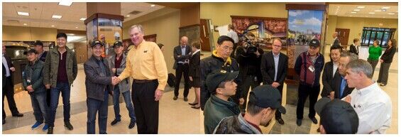 美國中部時間11月11日上午,Cat鋼鐵英雄爭霸賽盟主一行抵達卡特彼勒公司坐落于奧羅拉市的Cat裝載機工廠,展開為期兩天的卡特彼勒公司參觀訪問。隨后,盟主們輾轉(zhuǎn)皮奧里亞市,重溫卡特彼勒百年輝煌之路,訪問了生產(chǎn)推土機的卡特彼勒東皮奧里亞工廠和卡特彼勒的訪客中心,并在美國中部時間12日下午抵達愛德華茲演示與學習中心,通過遙控駕駛體驗了Cat D11T大型推土機。傍晚時分,卡特彼勒董事長兼首席執(zhí)行官道格拉斯?歐博赫曼與其他公司全球高層熱烈歡迎各位盟主的到來,并認真傾聽了他們對Cat產(chǎn)品設(shè)備的訴求。