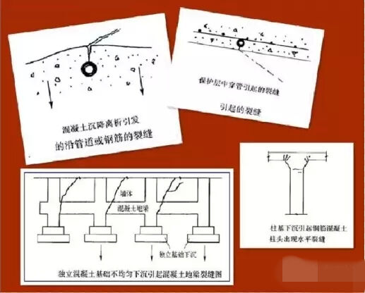 混凝土裂縫是由于混凝土結(jié)構(gòu)由于內(nèi)外因素的作用而產(chǎn)生的物理結(jié)構(gòu)變化,包括塑性塌落裂縫、塑性收縮(干縮)裂縫、溫度裂縫等。