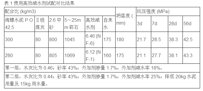 (1)使用減水率較高的高效減水劑