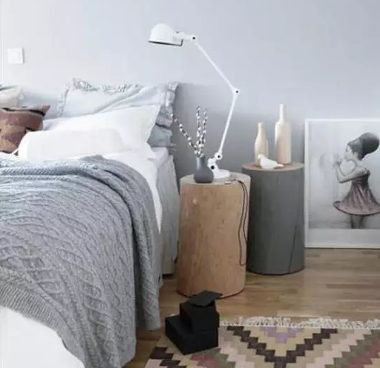 床頭柜選擇了兩個(gè)木墩,在家里頗有原木的氣息,舍棄了床頭板的設(shè)計(jì),沒有一絲繁縟的感覺,翻來覆去更加自在。