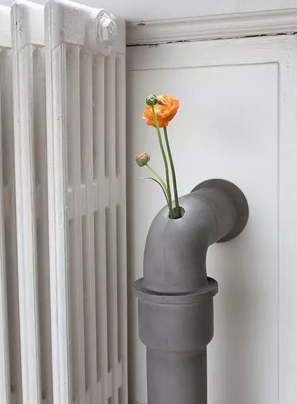 Sergey Makhno將混凝土制成規(guī)整的方體,上面被開了許多幾何形體的洞,放進玻璃瓶。這款混凝土跑中,混凝土的粗糙,花朵的嬌嫩,形成鮮活的對比。