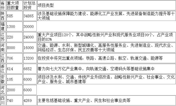 比如,四川去年重點(diǎn)項(xiàng)目500個(gè)總投資近3萬億,年度計(jì)劃投資4188億元。而今年740個(gè)重大項(xiàng)目總投資4269億元,計(jì)劃完成投資1179億元;而安徽去年重點(diǎn)項(xiàng)目投資計(jì)劃規(guī)模8000億元,今年估算規(guī)模6000多億元。