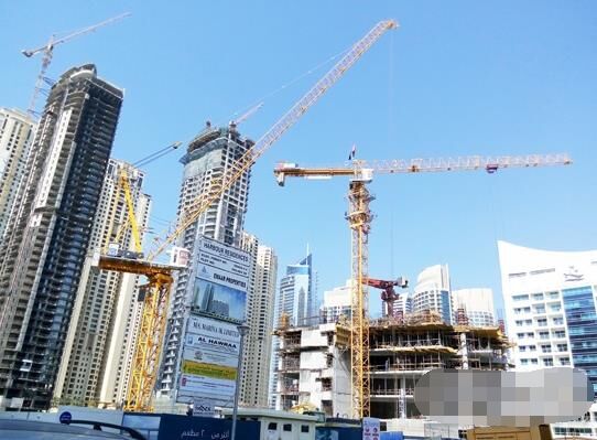 位于中東最富裕的城市,阿拉伯聯合酋長國迪拜的地標建筑—瑪瑞納購物中心旁某工地,交通便利,風景優(yōu)美,無人駕駛的輕軌從工地旁經過,兩臺徐工塔機正揮舞著臂膀,有條不紊的運作著,該工地承建單位是中鐵十八局集團公司阿聯酋分公司,運作的塔機分別為起重量為10噸、型號為QTZ160(6022-10)的平頭式塔機與起重量為8噸、型號為XGTL100(5016-8)的動臂式塔機。