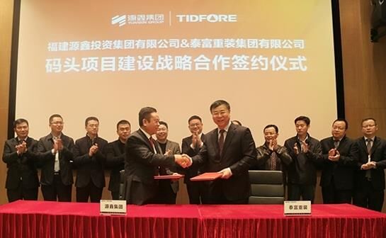 泰富重裝集團(tuán)與福建源鑫投資集團(tuán)在泰富湖南九華工業(yè)園簽署了碼頭項(xiàng)目建設(shè)戰(zhàn)略合作協(xié)議。泰富重裝集團(tuán)董事長(zhǎng)張勇、源鑫投資集團(tuán)董事長(zhǎng)陳必松分別代表雙方簽字,雙方企業(yè)高管、源鑫學(xué)院學(xué)員代表等百余位成員共同見(jiàn)證了這一重要時(shí)刻。
