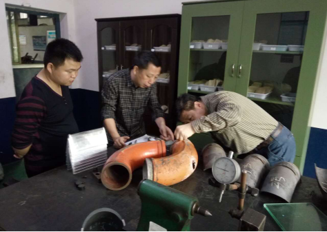 (符會(huì)長(zhǎng)現(xiàn)場(chǎng)分析彎管磨損情況)