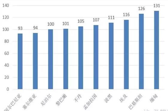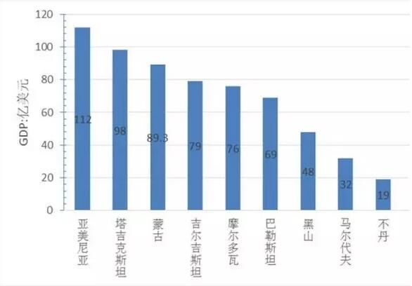圖2“一帶一路”地區(qū)經(jīng)濟(jì)總量后10名的國家