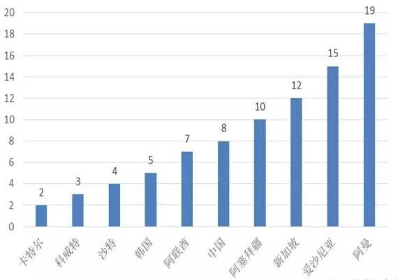世界經(jīng)濟(jì)論壇發(fā)布的《2015-2016全球競爭力報告》,用法律和行政架構(gòu)、基礎(chǔ)設(shè)施、宏觀經(jīng)濟(jì)環(huán)境、衛(wèi)生和基礎(chǔ)教育、高等教育和培訓(xùn)、市場效率、勞動力市場效率、金融市場發(fā)展、技術(shù)、市場規(guī)模、商業(yè)環(huán)境完備性、創(chuàng)新12個指標(biāo)對全球140個國家和地區(qū)的競爭力進(jìn)行了評估,并對12個指標(biāo)賦值加權(quán)后,得出各國的綜合競爭力排名?!耙粠б宦?/span>”沿線66個國家中,有53個國家的競爭力數(shù)據(jù)在此報告中體現(xiàn)(詳見附表2)。排名位于前70名(140個國家,70名為世界平均水平)的國家有35個,其中新加坡、日本、卡特爾、阿聯(lián)酋、馬來西亞、沙特、韓國、以色列、中國、愛沙尼亞的排名在“一帶一路”沿線國家中位于前10名,在全球的排名分別為第2名、第6名、第14名、第17名、第18名、第25名、第26名、第27、第28名、第30名;中國排名靠前的主要因是宏觀經(jīng)濟(jì)環(huán)境良好、市場規(guī)模大,其余10個指標(biāo)排名均在30名以后;位于后70名的國家31個,其中阿爾巴尼亞、塞爾維亞、尼泊爾、黎巴嫩、不丹、孟加拉國、波黑、埃及、巴基斯坦、緬甸的排名在“一帶一路”沿線國家中位于后10名,在全球的排名分別為第93名、第94名、第100名、第101名、第105名、第107名、第111名、第116名、第126名、第131名。總體上看,“一帶一路”沿線國家競爭力在全球排名分布比較靠后,整體競爭力能力有待提升。
