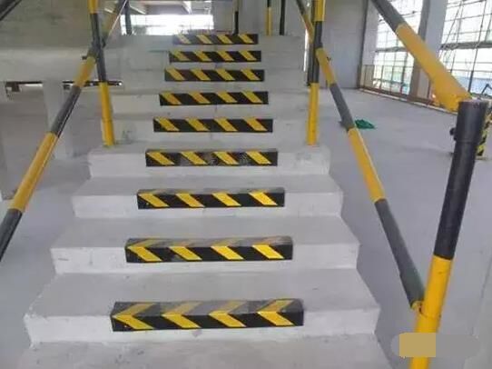 ⑧對人員出入、運(yùn)料通道處的混凝土陽角(如樓梯、柱、墻等),拆模后要用角鋼或木板(或硬塑料條)等包裹進(jìn)行保護(hù),避免缺棱掉角。