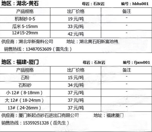 大宗砂石在線交易是“互聯(lián)網(wǎng)+砂石”生態(tài)圈重要一環(huán),今日小編給大家整理此份報(bào)價(jià)表旨在幫助廣大砂石需求商(攪拌站、工程建設(shè)單位、砂石貿(mào)易商等)以最快捷、最高效、最優(yōu)惠的方式來獲取優(yōu)質(zhì)的砂石產(chǎn)品,同時(shí)也為誠信優(yōu)秀的砂石企業(yè)打開一扇創(chuàng)新之窗,讓好的企業(yè)得到良性發(fā)展,讓好的砂石產(chǎn)品獲得市場機(jī)會(huì),砼商網(wǎng)將定期為市場提供各種規(guī)格的砂石產(chǎn)品及報(bào)價(jià)信息,敬請(qǐng)關(guān)注!