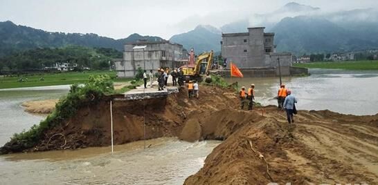 “1號(hào)裝載機(jī)注意,迅速對(duì)前方石料進(jìn)行前推,一次合攏堤壩”。7月4日凌晨5時(shí),在大雨中,隨著指揮旗抬起,麻城市龍池橋宋家河村固道長(zhǎng)43米潰壩,經(jīng)過(guò)武警交通六支隊(duì)10名官兵21小時(shí)連續(xù)奮戰(zhàn),被成功封堵合攏?!?臺(tái)裝備配備3名官兵,每臺(tái)裝備1名安全員,2名操作手,確保操作手能夠輪換,做到人歇機(jī)不歇。”通過(guò)科學(xué)編組,在狹窄的壩頂,水上挖掘機(jī)、裝載機(jī)晝夜不停展開(kāi)搶險(xiǎn)。在麻城抗洪搶險(xiǎn)戰(zhàn)斗中,針對(duì)潰口處河堤道路狹窄,運(yùn)輸石料困難,搶險(xiǎn)官兵迅速制定搶險(xiǎn)方案,采取對(duì)向推進(jìn),兩側(cè)供料,挖推結(jié)合的戰(zhàn)法堵口。根據(jù)現(xiàn)場(chǎng)實(shí)際,在潰口左側(cè)配備1臺(tái)裝載機(jī)、1臺(tái)水上挖掘機(jī),在右側(cè)配備1臺(tái)挖掘機(jī),地方運(yùn)料車(chē)配合,確保發(fā)揮裝備最大效能。推料、倒料、拍實(shí)、碾壓……,燈光照耀下,裝載機(jī)操作手蘇鵬與安全員密切配合,迅速在潰口上方完成一連串動(dòng)作。10米、8米、2米,在一次次填筑推進(jìn)下,潰口的長(zhǎng)度越來(lái)越短,終于在凌晨5時(shí)11分,堤壩完全合攏,成功排除險(xiǎn)情。