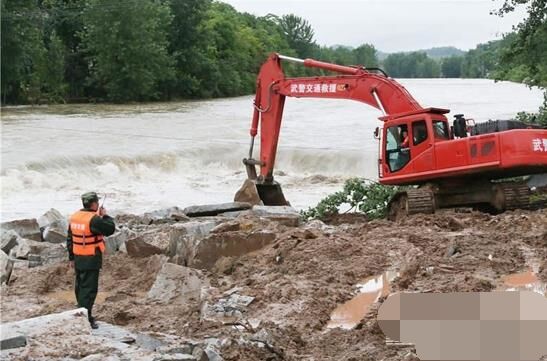 裝載機(jī)和挖掘機(jī)不停挖土并傾倒在河床上,山頂滑下來(lái)的巨石被填筑在路基邊坡,加固道路,保障安全,推土機(jī)在后方盡量推平直到可以供車(chē)輛行人行走,這是一幅抗洪救災(zāi)現(xiàn)場(chǎng)最常見(jiàn)的畫(huà)面,通力合作的除了武警官兵和救援人員們,就屬這些工程機(jī)械設(shè)備最為搶眼了。